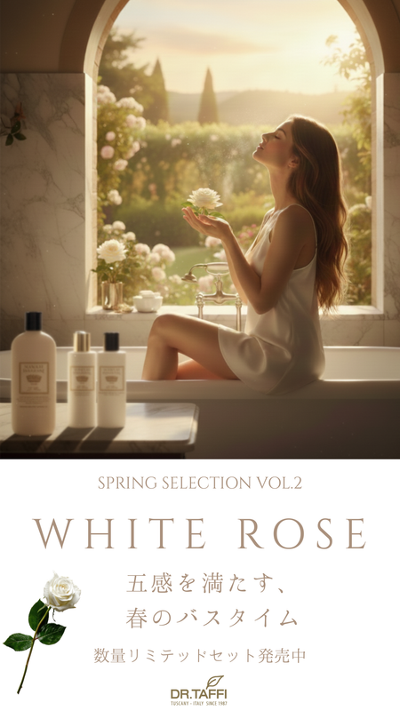スプリングキャンペーン第2弾 10余年の時を経て、ついに解禁。日本で最も愛される「ホワイトローズ」が、あなたのバスルームをトスカーナの庭園へと変えます。新作のバス&ヘアコレクションを含めた、今だけの特別なセレクションをお届けします。 詳細はこちら